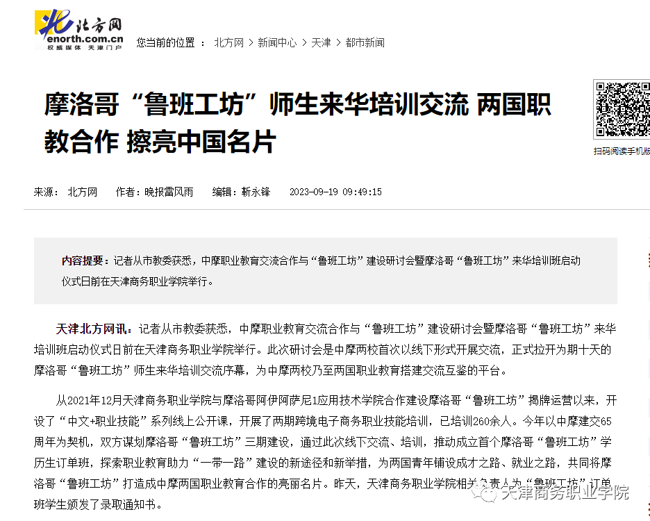 摩洛哥“鲁班工坊”师生来华培训交流 两国职教合作 擦亮中国名片-新闻中心-北方网 (enorth.com.cn)