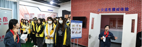 讲解员首先向现场师生详细介绍了各类消防装备器材的使用方法和注意事项。其次通过火灾隐患排查、模拟报火警、灭火器的选择、逃生面罩的使用及火场逃生等沉浸式体验帮助学生提高自救能力,最后带领学生进行了心肺复苏全流程实践。