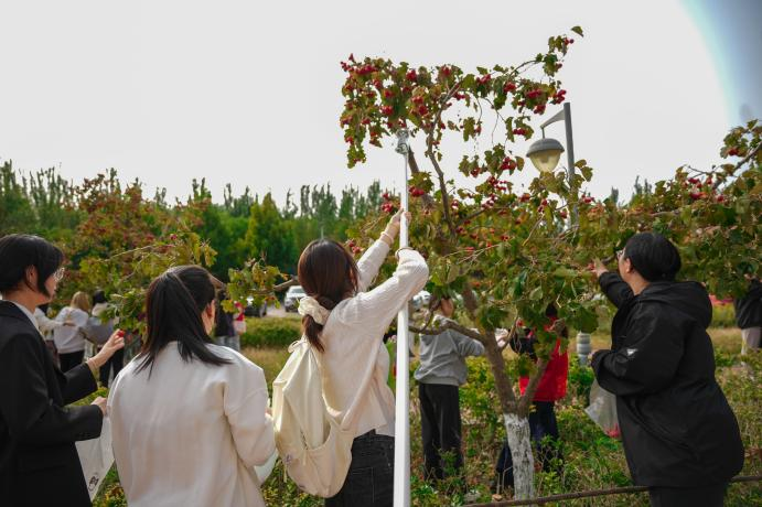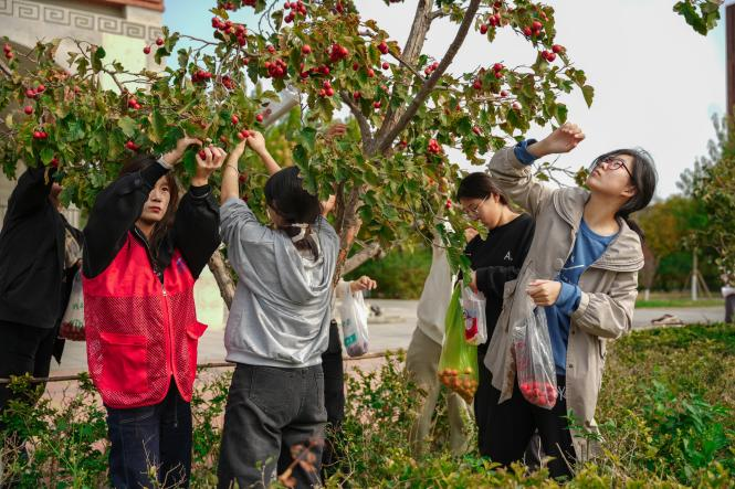 金秋寒露时节,美丽的商职校园里红红的山楂缀满枝头,甚是喜人。我国农谚有云:“寒露收山楂,霜降刨地瓜”。为丰富学校劳动教育课程实践育人活动,让同学们在体验二十四节气不同农事劳作过程中体会和传承劳动精神,金融学院在党委学生工作部、后勤管理处的指导下开展“商务四季 五育融合 金秋寒露 山楂采摘”劳动教育实践活动,组织来自金融学院、会计学院的同学们集中对学校图书馆楼两侧30株山楂树进行采摘。