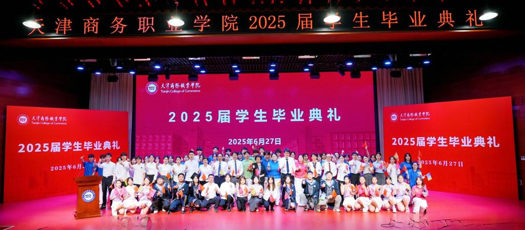 蝉声织就离别韵,少年踏浪启新航。6月27日上午,天津商务职业学院在学校报告厅举行2025届学生毕业典礼,校领导、各二级专业教学学院领导班子成员、职能部门和教学部负责人、教师和毕业生代表、家长以及优秀校友代表相会在最美校园,满怀期待和梦想,用奋斗描绘青春的模样。